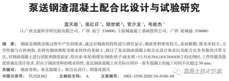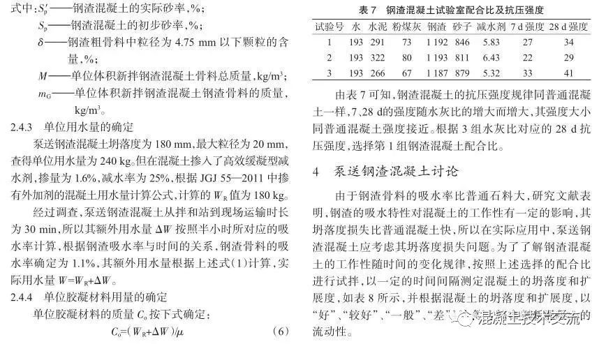 泵送钢渣混凝土配合比设计与试验研究