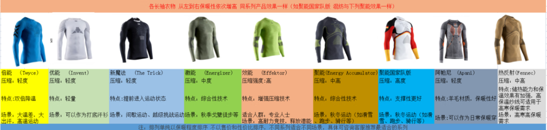 极风系列:压缩比较强,保暖比较好,可以抑菌