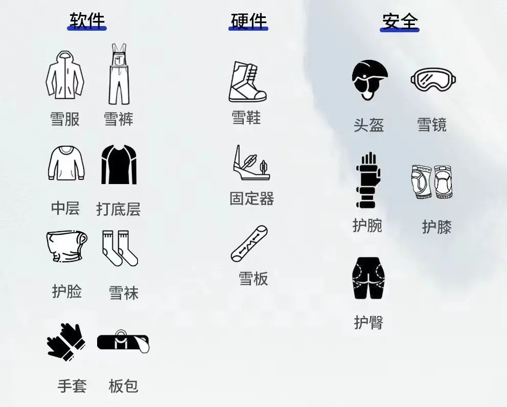 2. 硬件类:这一类包括雪板、雪鞋和固定器。选择合适的硬件不仅影响着滑雪的性能,也直接关系到安全。因此,了解不同硬件的特性和适用条件是至关重要的。