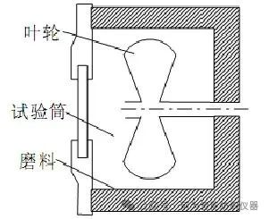 翻动磨是将织物试样的四周用黏合剂黏合,并称取试样质量,然后投入内有叶片,并有不同磨料的试验筒内。试验时,叶片高速回转, 试样在叶片的翻动下连续受到摩擦、撞击、弯曲、压缩与拉伸等作用,经规定的时间后, 取出试样,再称其质量,质量损失越小,表示织物越耐磨。