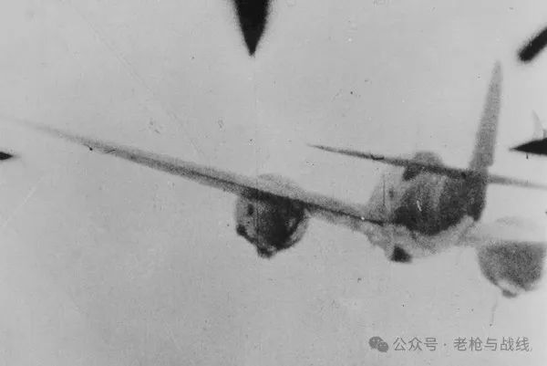 图注:第五航空队P-39战斗机照相枪胶片记录下Ki-48的最后时刻,机身下可见无线电操作员使用的腹部机枪位置