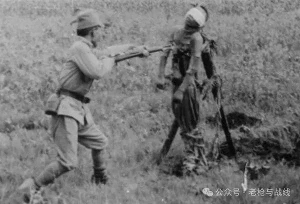 图注:在战争期间,用中国战俘来练习刺杀并不罕见。1937至1945年间,约有1200万中国人被杀害。