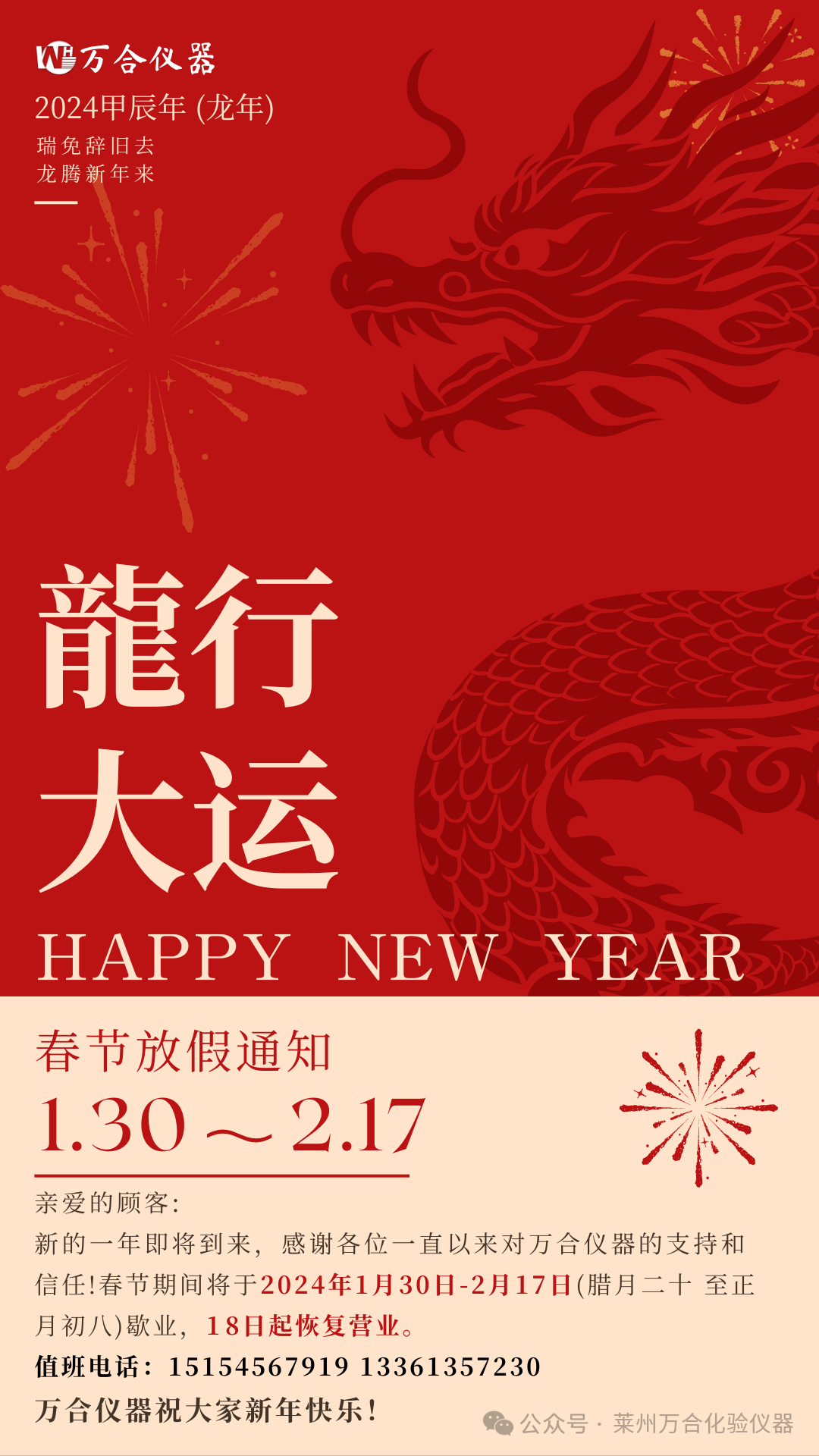 万合仪器春节放假通知