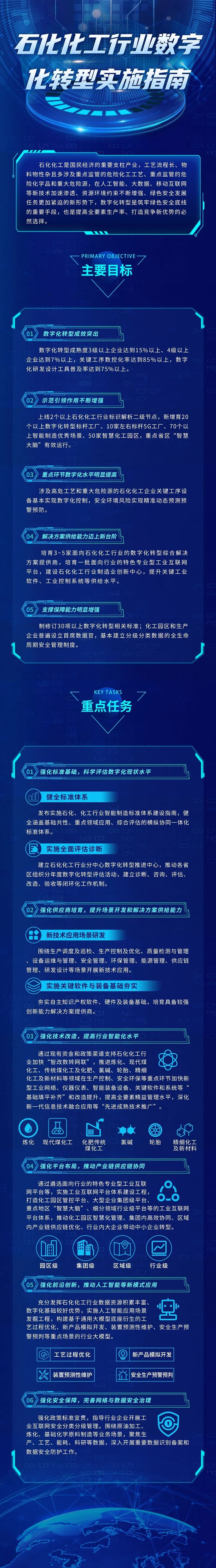 目前,石化化工行业不同领域生产规模不一,存在装备种类多、安全环保风险隐患大、数字化基础参差不齐等问题,为增强指导的精准性,亟需因业制宜,坚持问题导向,注重实效,根据不同细分领域转型痛点和发展需求,立足高端化、智能化、绿色化、安全化发展方向,明确不同行业深化与5G、工业互联网、大数据、人工智能、虚拟现实等新一代信息技术融合,实现改造提升的实施路径。《指南》提出,通过现有资金和政策渠道支持石化化工企业加快“智改数转网联”,在生产控制、安全环保等重点环节加快新型工业网络、仪器仪表、智能装备设备、关键软件和系统等“基础填平补齐”,深化新一代信息技术融合应用等“先进成熟技术推广”,并设置重点领域数字化技术改造提升工程专栏,明确炼化、现代煤化工、传统煤化工及化肥、氯碱、轮胎、精细化工及新材料等6大主要领域先进技术的具体应用环节和建设重点,指导有条件的企业先试先行。