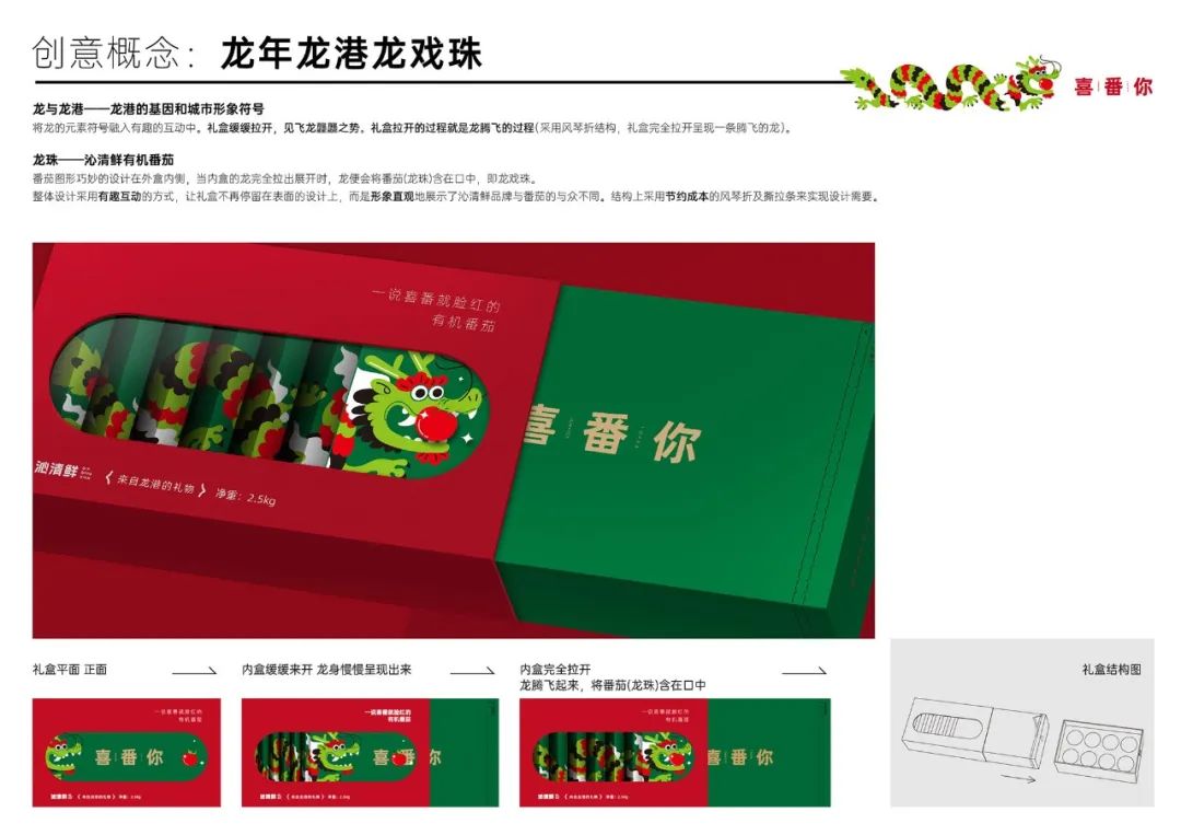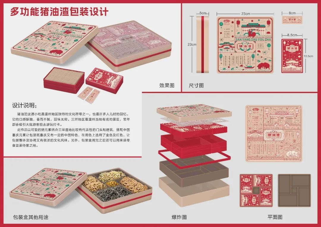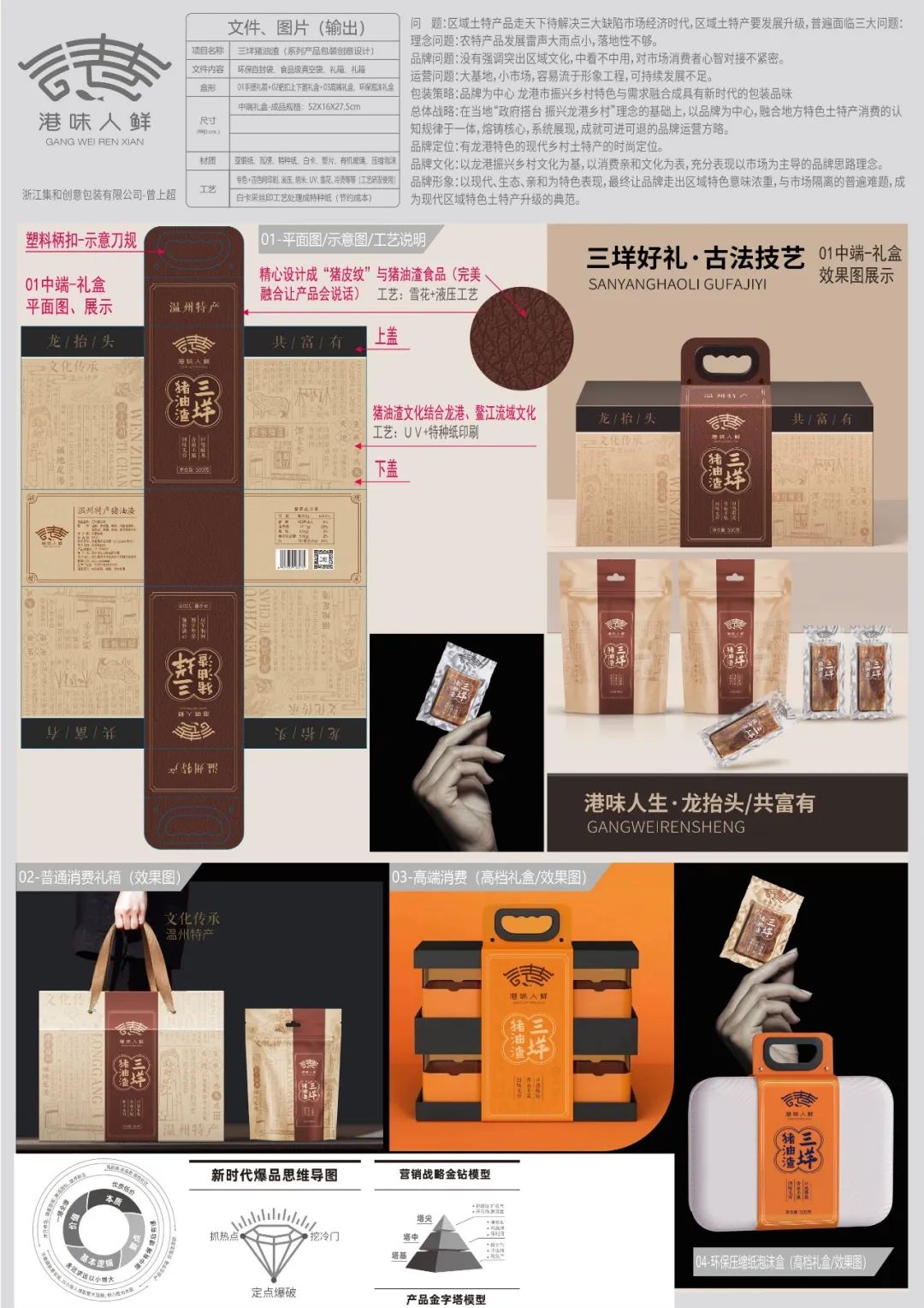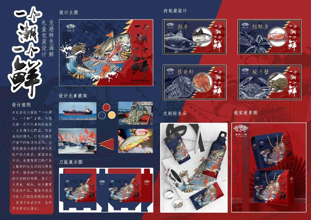 大赛评选出14个奖项。其中一等奖1名,由浙江集和创意科技有限公司的三垟猪油渣包装设计获得;二等奖2名,分别是温州意形堂包装(龙港市印刷包装行业协会理事单位)设计的余家慕粉干包装盒、独立设计师王建峰的三垟猪油渣包装设计;三等奖3名,分别为合壹创意的舥艚鱼饼包装设计、浙江晴耕雨读实业有限公司(龙港市印刷包装行业协会副会长单位)的西红柿包装设计、杭州阿塔工作室的舥艚鱼饼包装设计,大赛另外评选出优秀奖8名和最具网络人气奖2名。(详细名单附后)