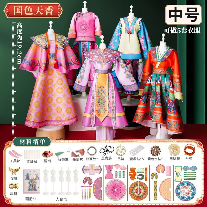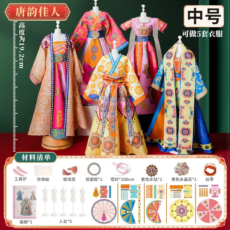 年底降价促销??39.9元,培养服装设计兴趣❗儿童手工DIY汉服服装设计玩具~圆每个爱美的女孩??一个服装设计师的梦!5人台,5套服装设计?
