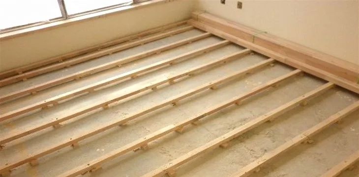 龙骨的距离太远(超过350mm),地板侧边之间就会有摩擦,产生响声,如果你不在施工现场,记得让木工给龙骨拍照再铺地板。实木地板干缩湿胀,装地板得根据含水率、木材的干缩系数,确定地板间的缝隙。