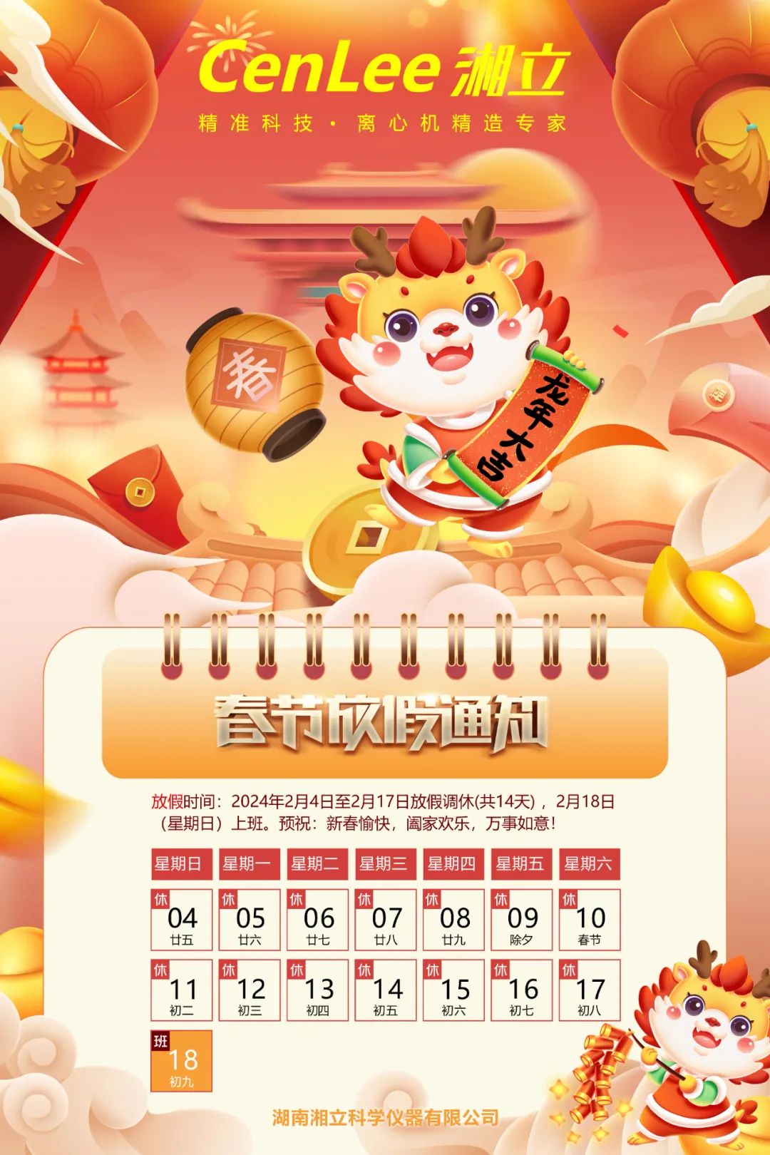 湘立仪器 | 2024年春节放假安排
