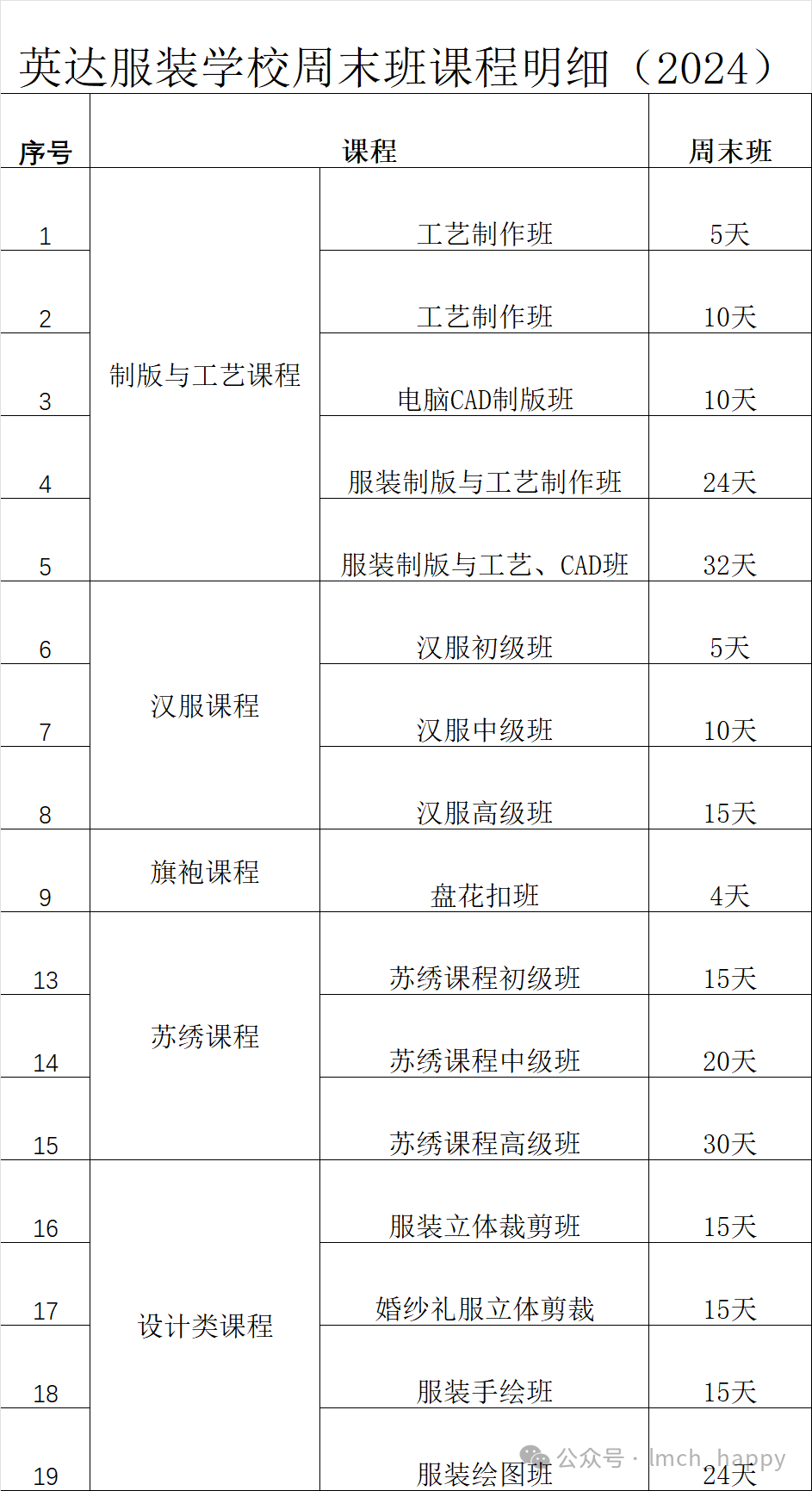 2024年苏州市英达服装学校针对零基础小白入门开设的周末班服装课程如下图,感兴趣的同学可以找我了解。