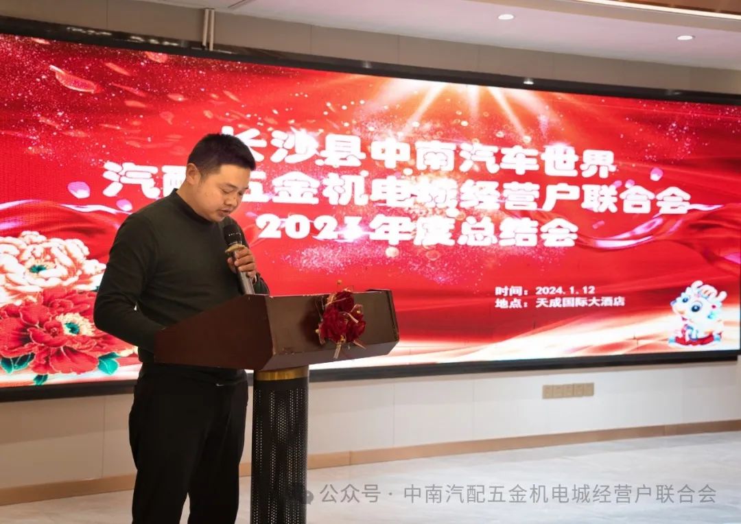 中南汽车世界汽配五金机电城经营户联合会2023年度总结会于1月7日在长沙县天成大酒店召开。