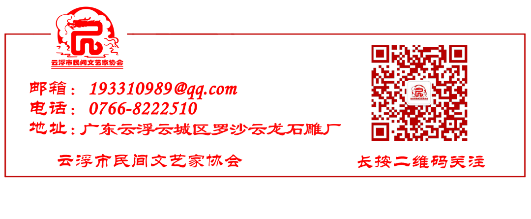 2023年底,云浮民协在云浮市委宣传部、市文联的指导下,和云城文联、云安文联、罗定文联共同组织精心策划,在博览会搭建展位6卡;在云浮各县、市、区征集特色作品,独特工艺、地方特产、文创产品200余件套,充分展示传统工艺、民间美术、文创产品、民间特产,彰显我市浓厚地域文化特色;组织石雕、古琴、古筝名家大师现场技艺展演,让观众零距离接触互动、感受我市精湛传统技艺、深厚文化底蕴的独特魅力;承担起举旗帜、聚民心、育新人、兴文化、展形象的使命任务;促进石材、商贸、旅游等产业融合;结合“走出去、请进来”引育人才创作精品力作,推进文化建设、发展文化创意产业,助力云浮争先进位跨越发展,以浓郁的地域文化特色,独具匠心地宣传展示“云浮形象”、讲好“云浮故事”,在新征程上奋力谱写云浮文化强市建设的精彩华章。