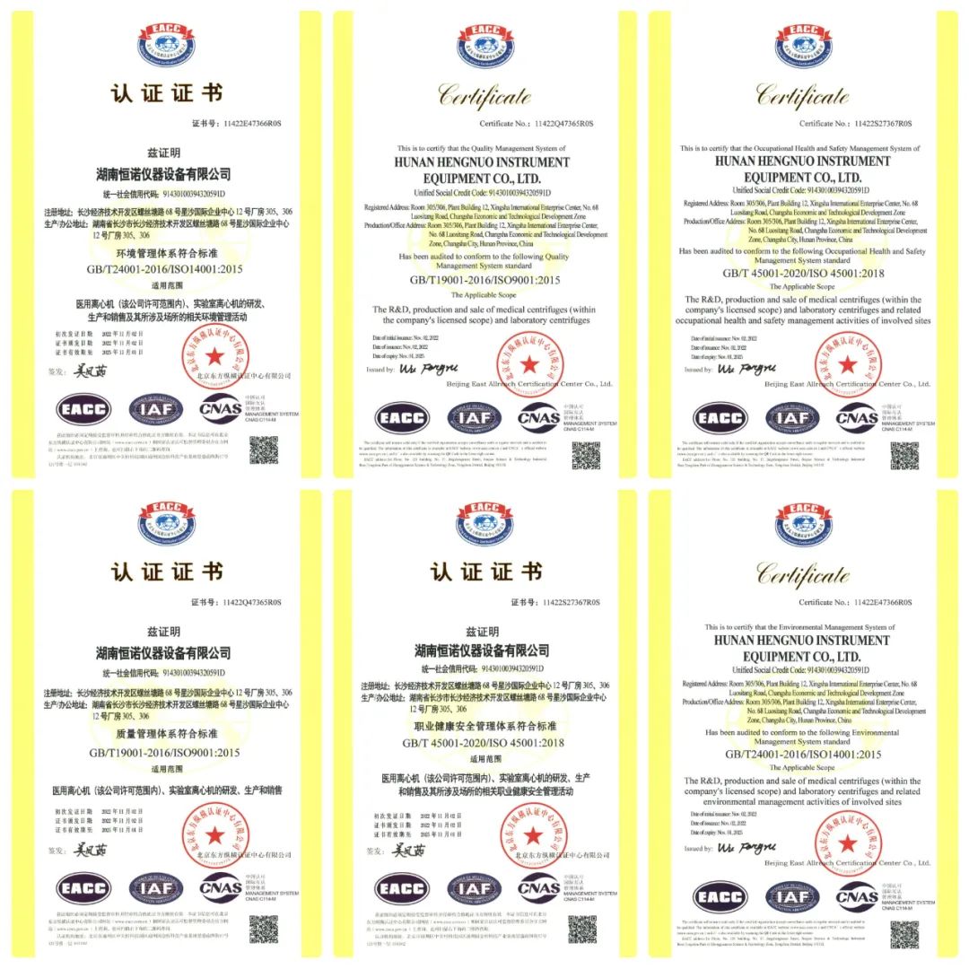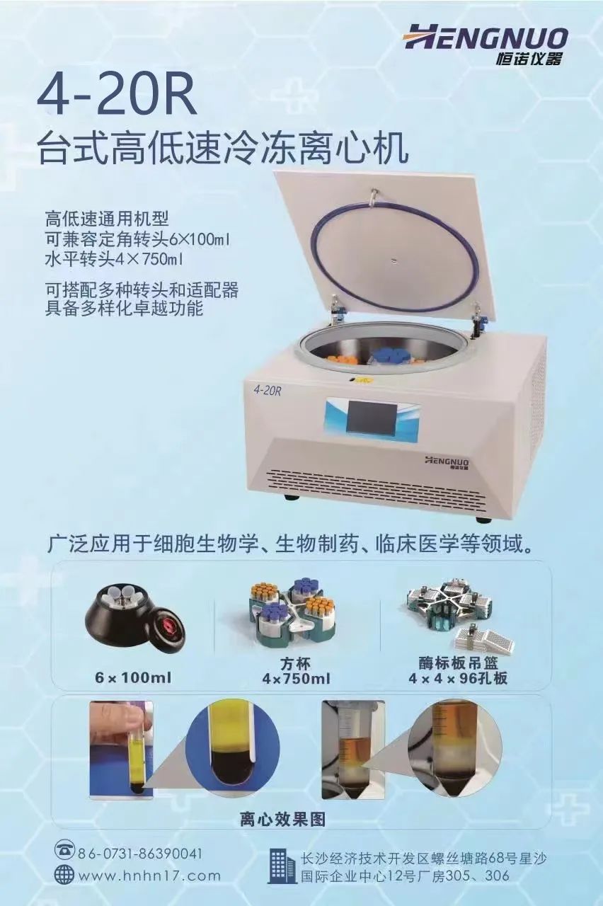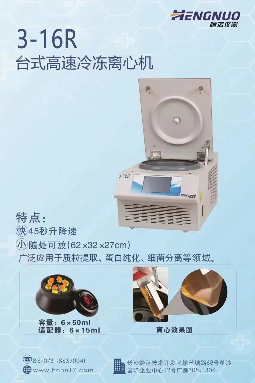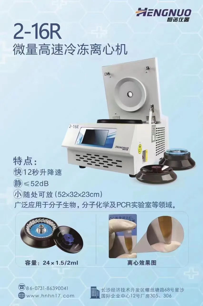 湖南恒诺仪器设备有限公司成立于2014年10月13日,是集产品设计、应用安装、产品开发、产品销售、售后服务于一体的国家高新技术企业,公司具备一类医疗器械生产资质,通过质量体系认证及CE认证等,由国内著名的离心机专家及应用专家创建,是一家领先的生命科学公司。
