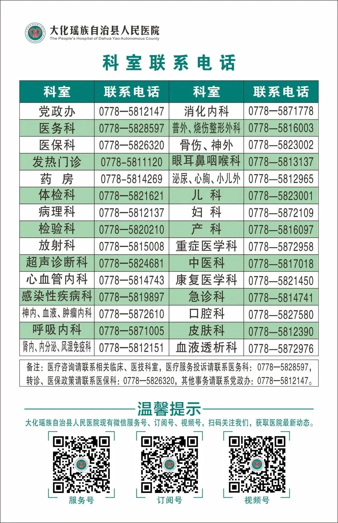 相关信息详情查询方式:关注大化人民医院微信订阅号。
