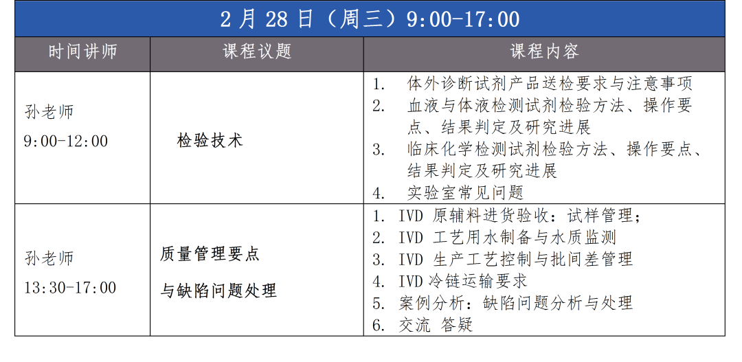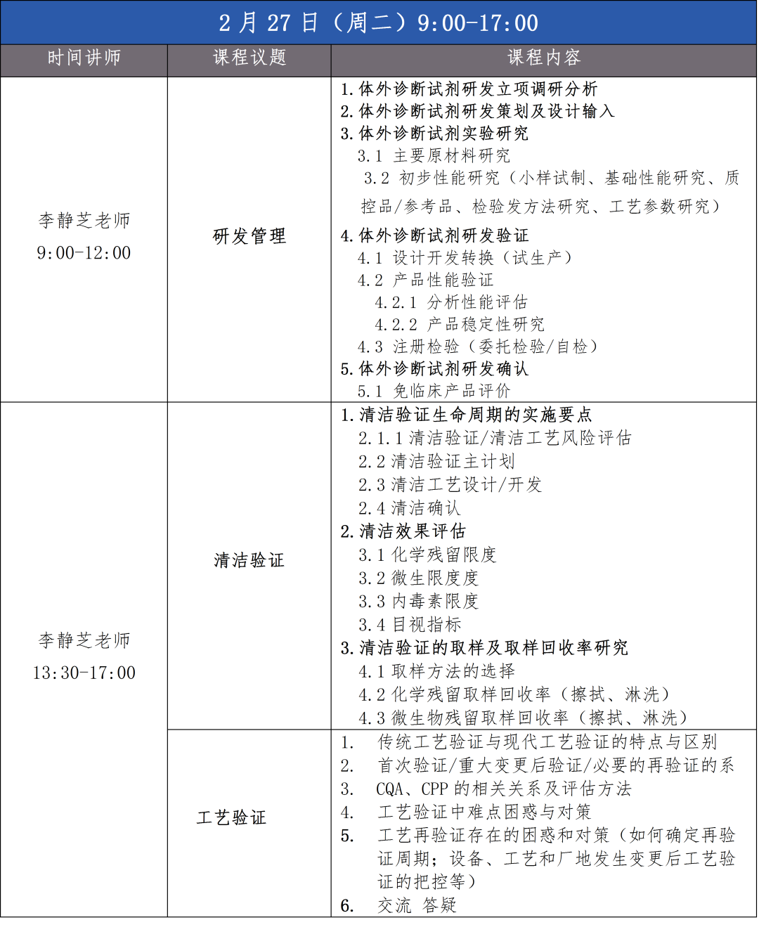 协会拟联合允咨医药培训中心举办“体外诊断试剂研发管理、工艺验证、清洁验证暨检验技术实施要点提升”专题培训,课程内容涵盖研发阶段的性能研究、性能验证、研发确认以及开发转化等内容,并讲清洁验证风险评估、计划、清洁确认、清洁效果评估等具体讲解,工艺验证中的首次验证、再验证、重大变更后的验证等内容。加入体外的各类检验方法技术及操作要点,以及质量管理的要点等具体问题。