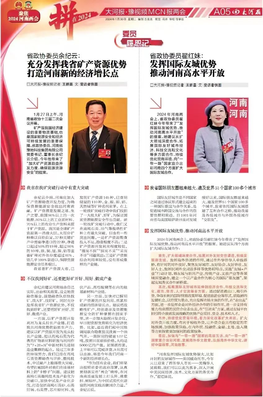 省政协委员余纪云:充分发挥我省矿产资源优势 打造河南新的经济增长点