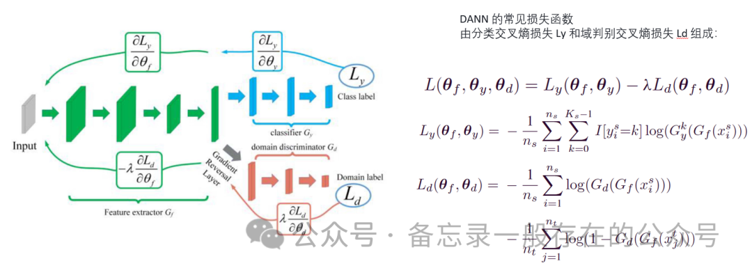Θf,θy,θd分别是他们的参数,由于源域输进去的图片或者信号有label,因此可以算出他们的Loss。