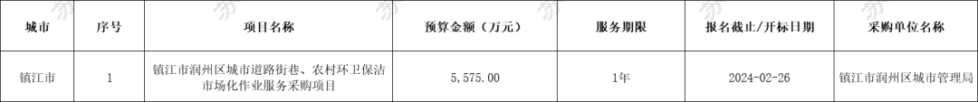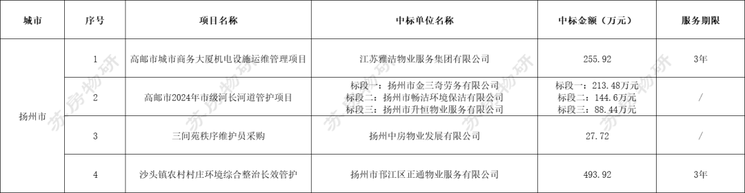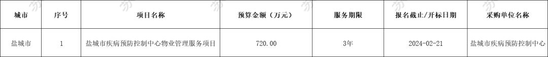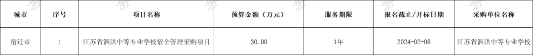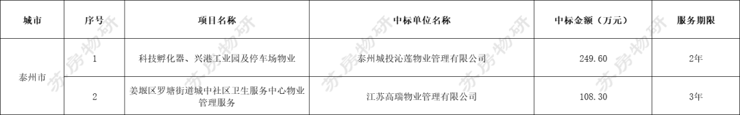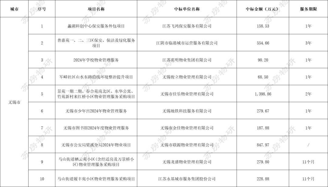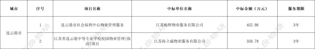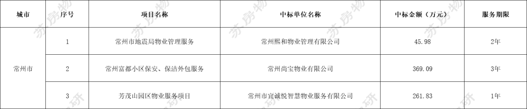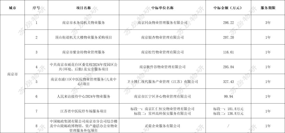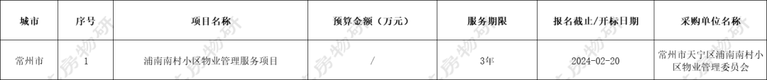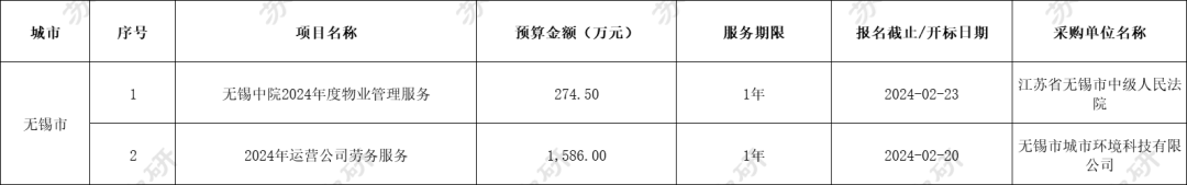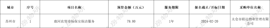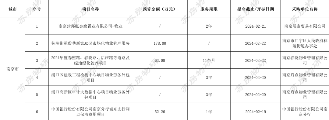 江苏地区共有15个物业服务项目招标