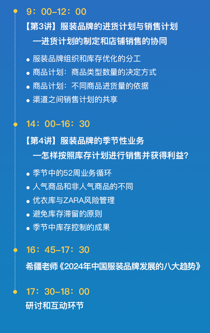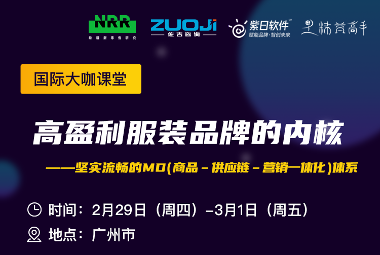 2月29日-3月1日 (周四、周五) ,斋藤孝浩老师来广州为中国服装企业授课,系统讲解服装品牌正规军打法MD: 商品-供应链-销售一体化的运营体系和经营策略,以世界排名第一和第二的ZARA和优衣库为例,理论与实践结合,两天一夜让同学们快速建立框架,抓住要点,学完了回去就可以立马改善应用。