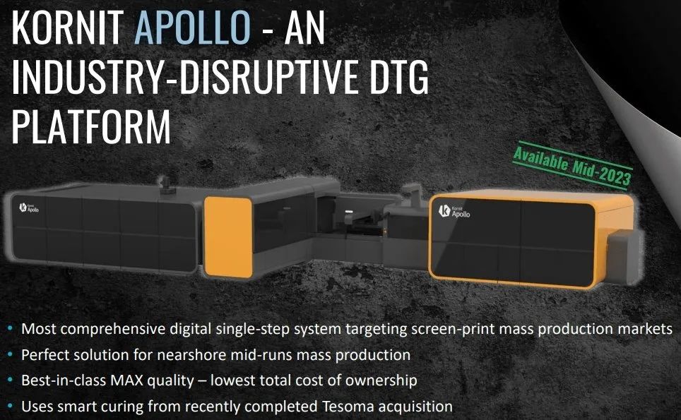 康丽数码总裁 Ronen Samuel 表示:“Kornit Apollo 是市场上最先进、最成熟的解决方案,使数字化生产成为主流,为品牌、配送商和零售商创造真正的商机。” “阿波罗计划于去年首次宣布,它承诺改变一个过于复杂和缓慢的传统行业。通过在如此知名的客户中成功实施,很明显 Apollo 正在兑现其承诺。”