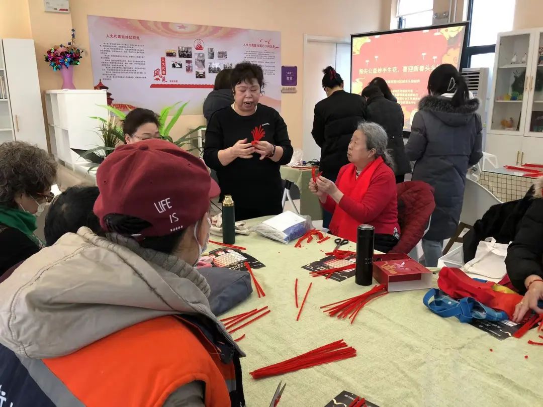 承遗风古训,传文化薪火。绒花,又称宫花、喜花,寓有吉祥、祝福之意,天津的春节年俗,除了过年贴吊签,女性朋友们头上还要带着一朵小绒花,正所谓衬体衣缠一色红,满头发叉颤玲珑,新年从头开始,日子有个好兆头。赤龙南街道手工坊刘阿姨现场为大家讲解红绒花的种类与寓意,最典型的就是聚宝盆,象征着幸福、吉祥、财富、长寿,并向大家展示做好的精美成品。活动现场,居民们认真仔细地听刘阿姨的编织讲解,动手跟着学习制作,大家开心的表示又学会了新的手工技能,不仅感受到了传统工艺之美,丰富了居民业余生活,同时承载了更多对中华文化的憧憬与传承。