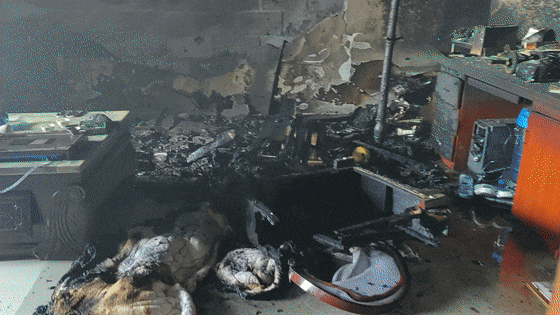 屋内沙发、家具等均被烧毁