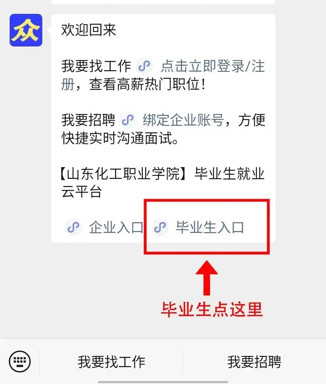 手机微信扫码关注“大众人才网”微信公众号,毕业生分别点击相关按钮进入山东化工职业学院校招端口,点击报名按钮,注册或登录已有账号即可直接参与。