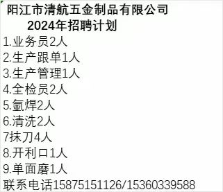 阳江市清航五金招聘简章