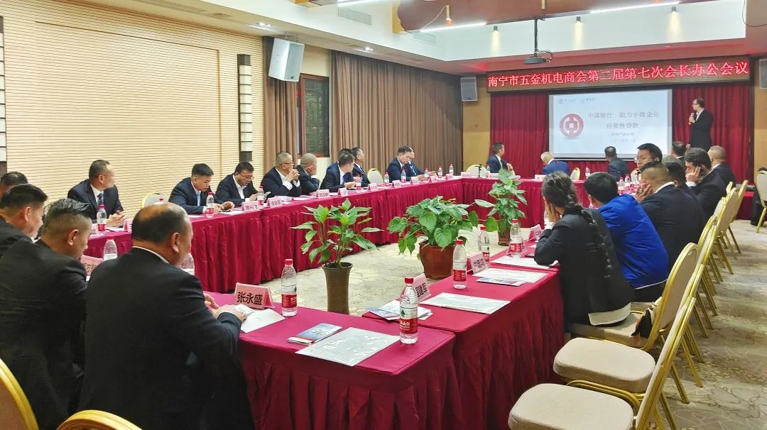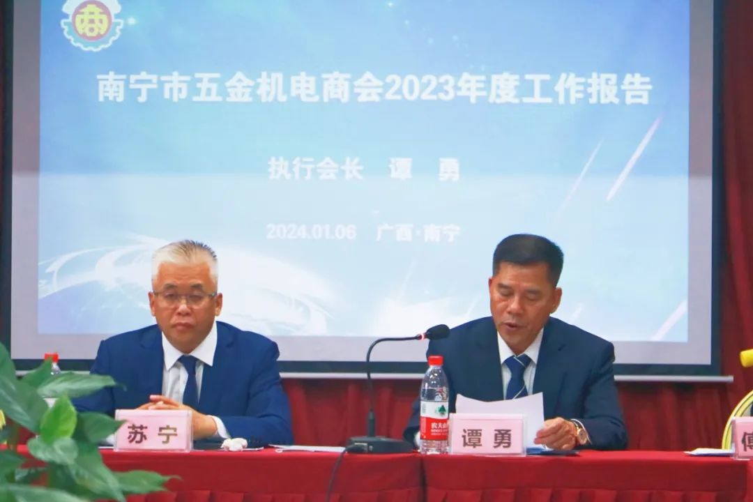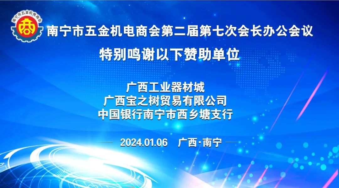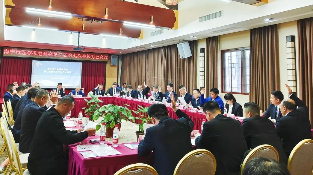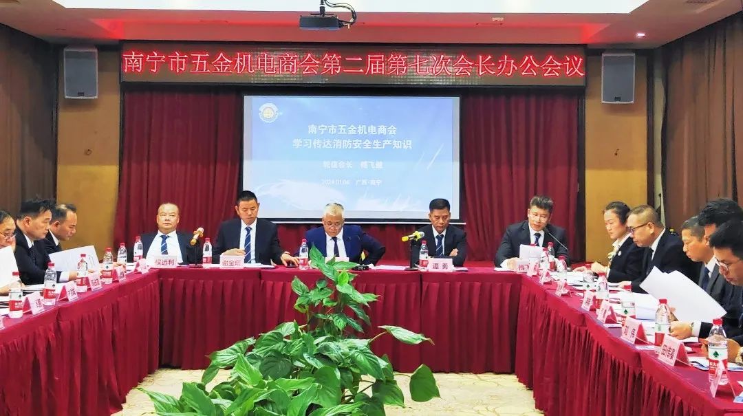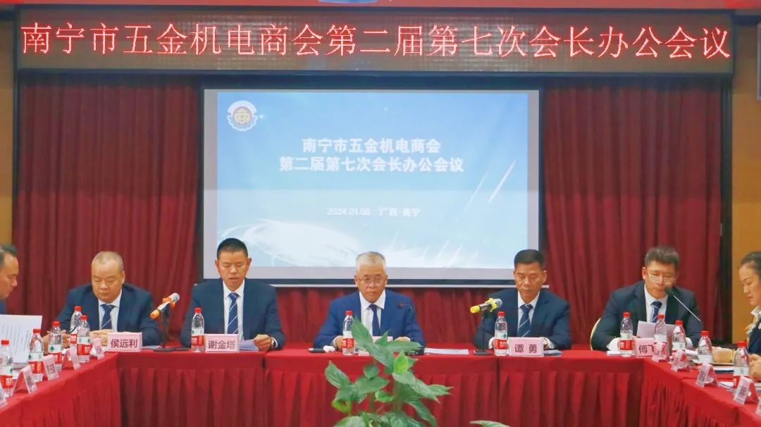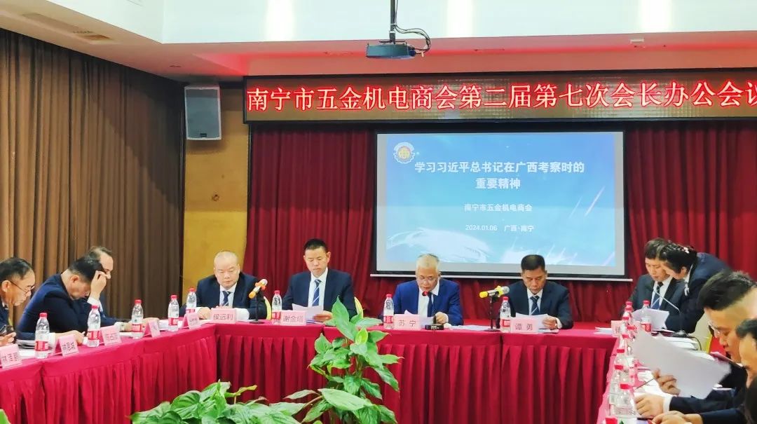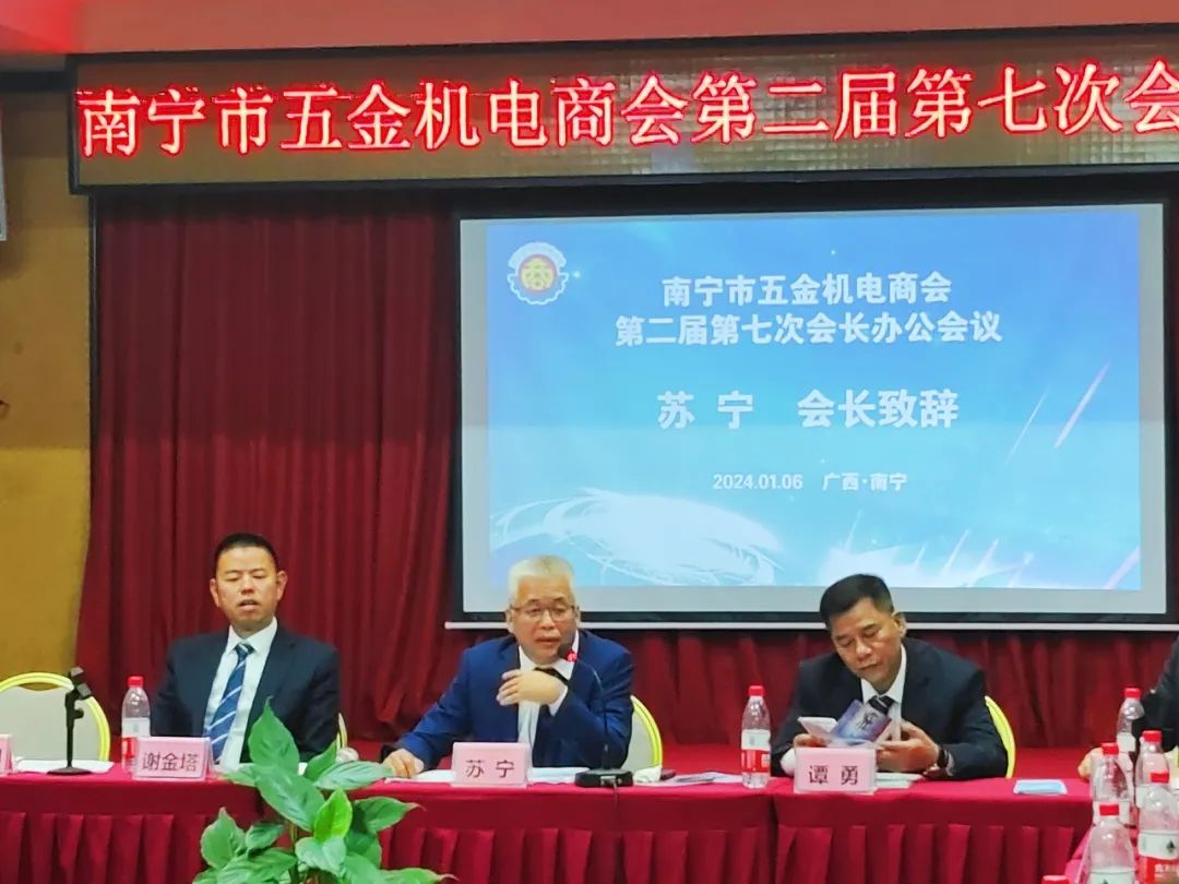 为了更好的开展2024年商会的工作,1月6日下午,南宁市五金机电商会第二届第七次会长办公会议在美丽南方忠良山庄召开。商会会长苏宁、执行会长谭勇,监事长谢金塔,轮值会长陈占友等29位副会长、监事及商会会员代表出席大会。大会由轮值会长傅飞建主持.