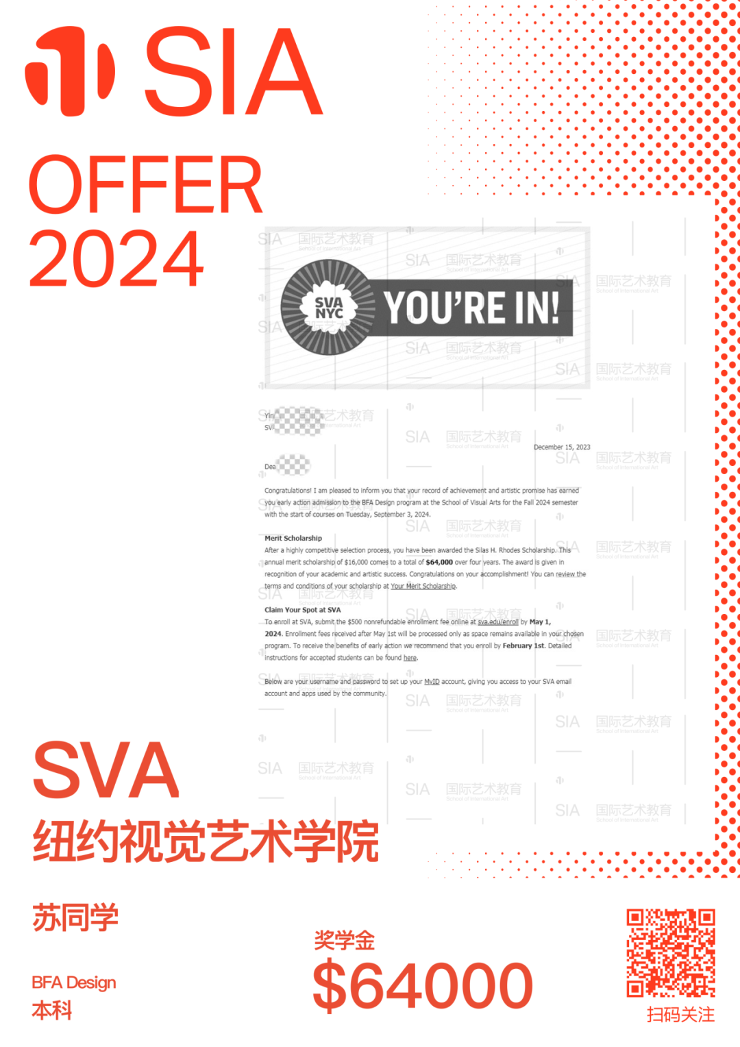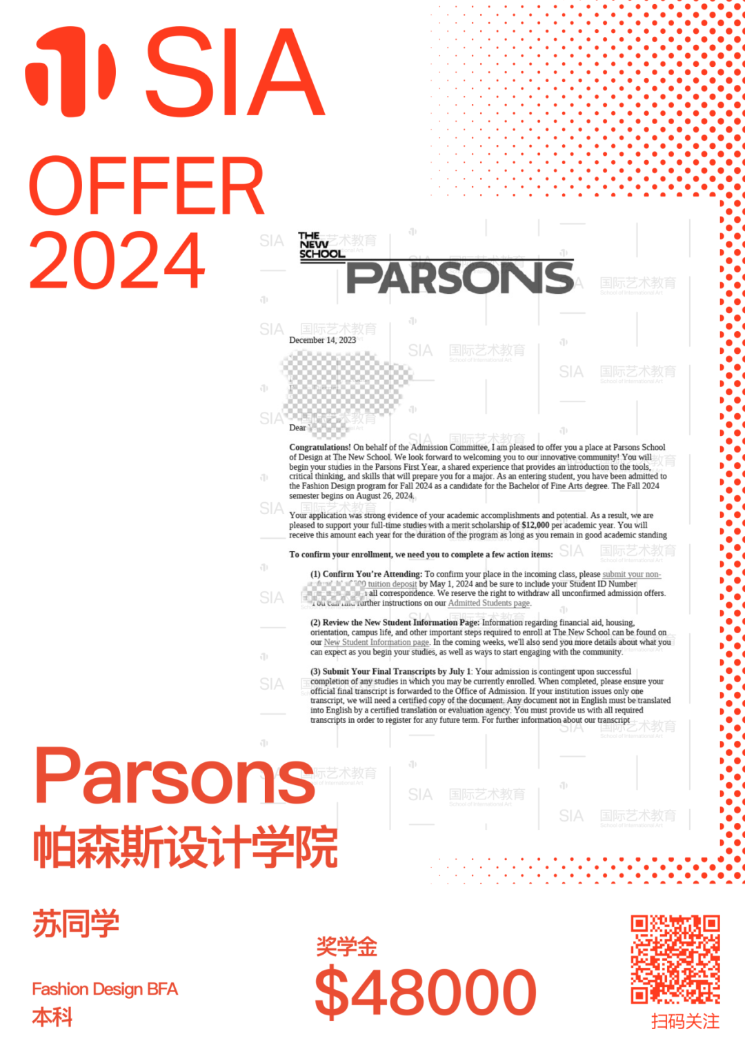 2023-2024申请季放榜进行时,SIA学员好消息不断。Sylvia同学就是其中一员,收获了“服装王牌校”帕森斯设计学校$48,000的带奖Offer!