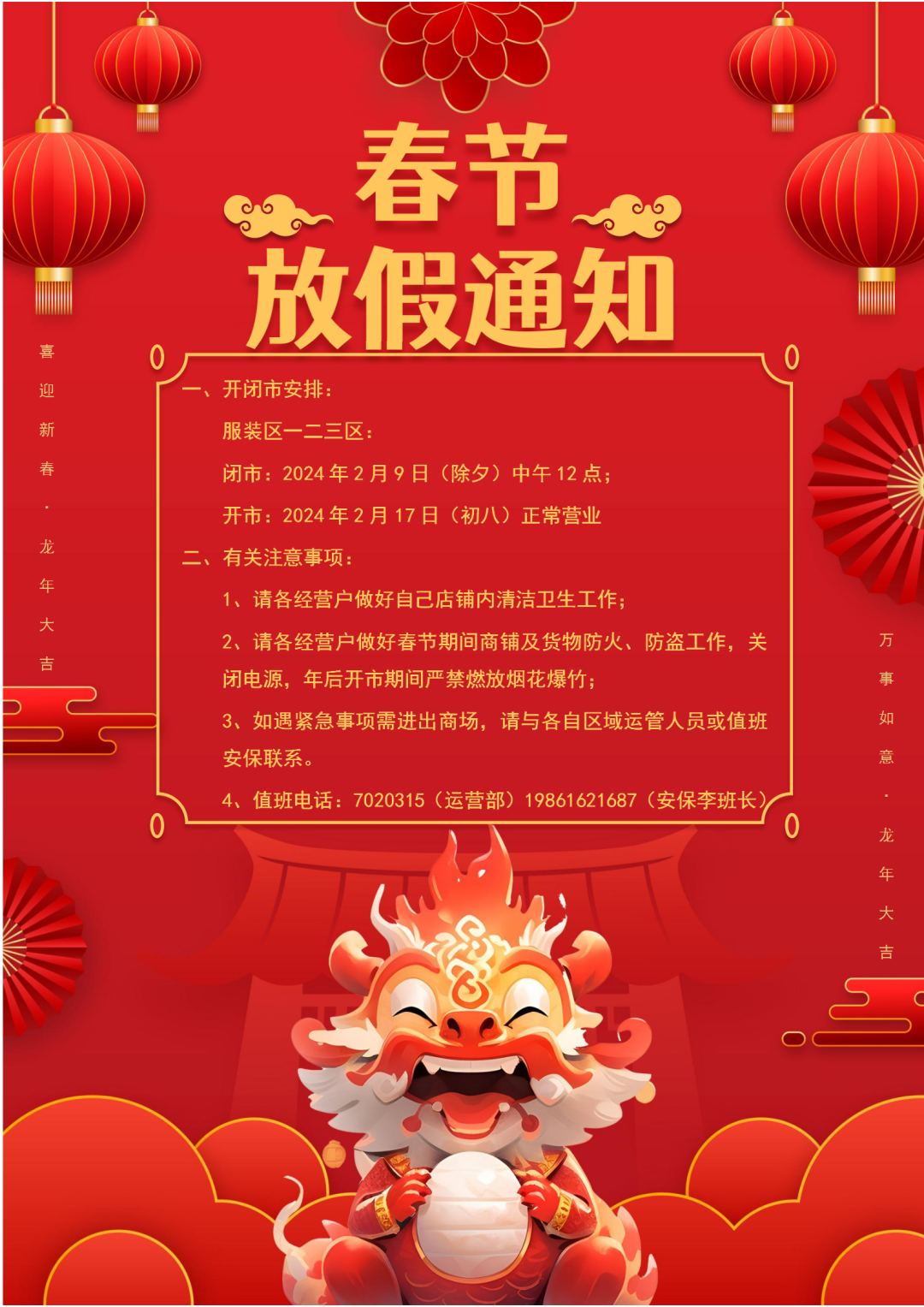 新康庄服装城春节放假通知