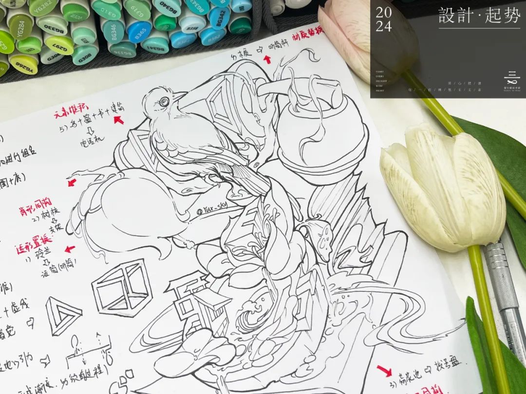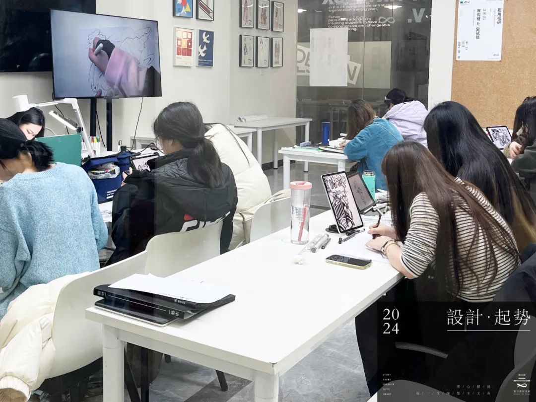 正式上课啦!寒假是同学们练习手绘基础的阶段,在最开始的阶段,每一位同学都非常用心,一张又一张线稿,不断地练习和进步,老师也在针对性的帮助大家进行完善。