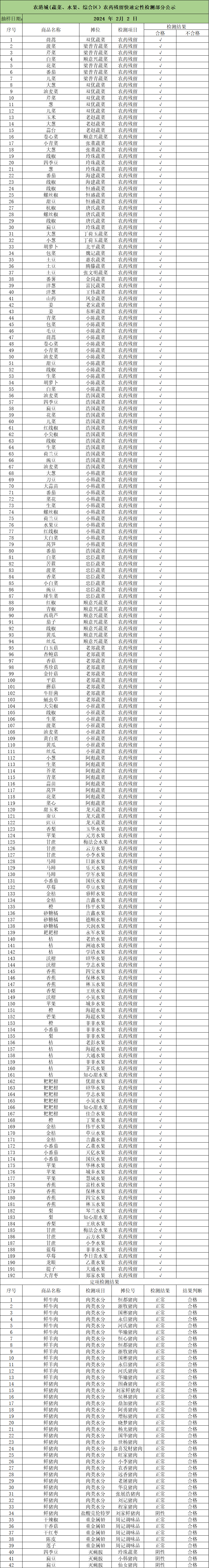 【买菜更放心】农港城食品安全快速检测公示,2月2日到货