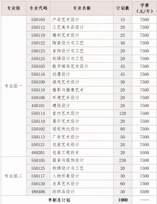 注:以上专业中服装与服饰设计、建筑设计、室内艺术设计、 视觉传达设计、广告艺术设计专业均设有多个专业方向,入校后按专业方向培养。