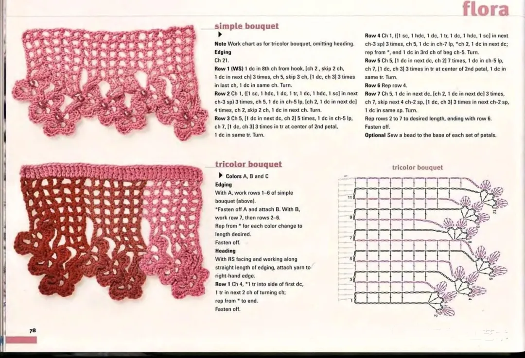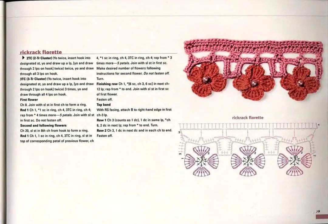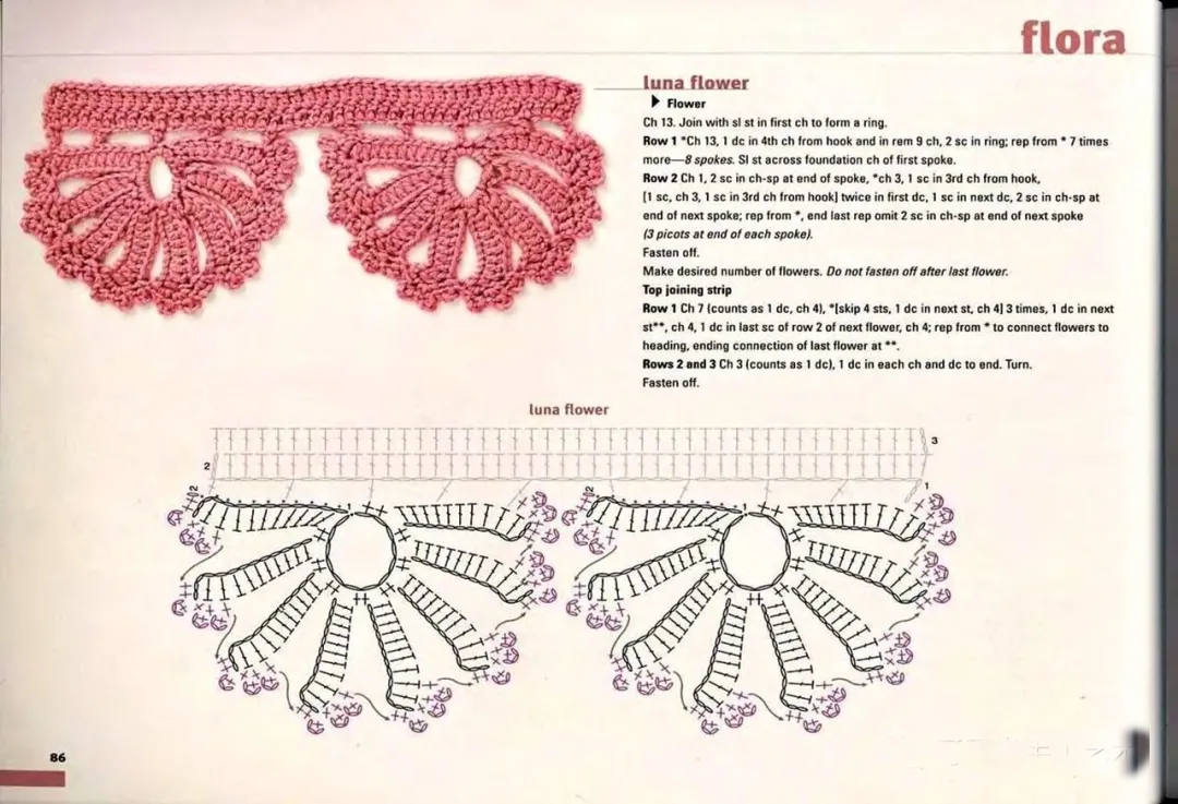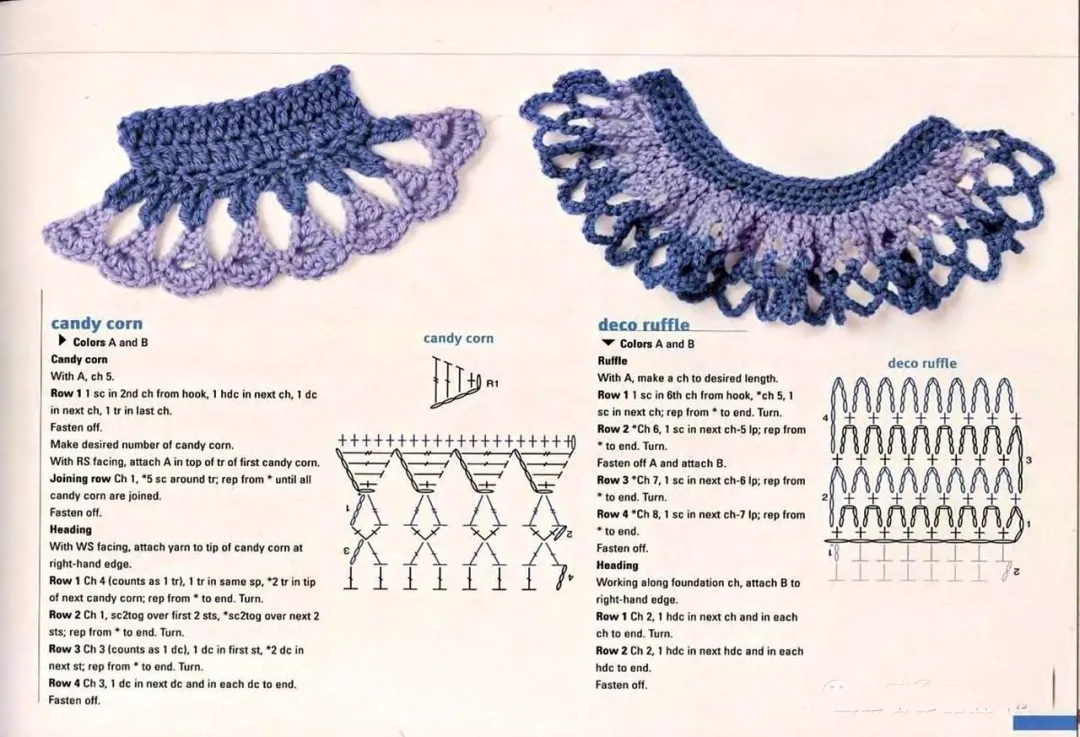 上一期小编给大家介绍了小花边的钩法,这一期有更多的花边图解,大家可以根据自己的选择去学着钩,给衣服钩一条花边缝上去或给家居用品来一场改造吧!