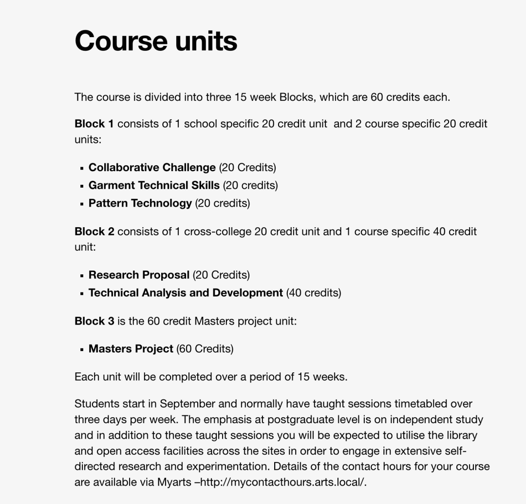 该MA课程大的架构和伦时其他服装课程架构相同,在专业细分内容方面有区别,通常包括如下要点: