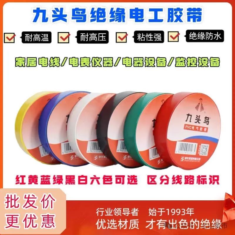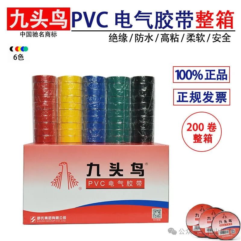 九头鸟pvc电工胶带整件200卷黑批发舒氏牌原装绝缘防水电气胶布