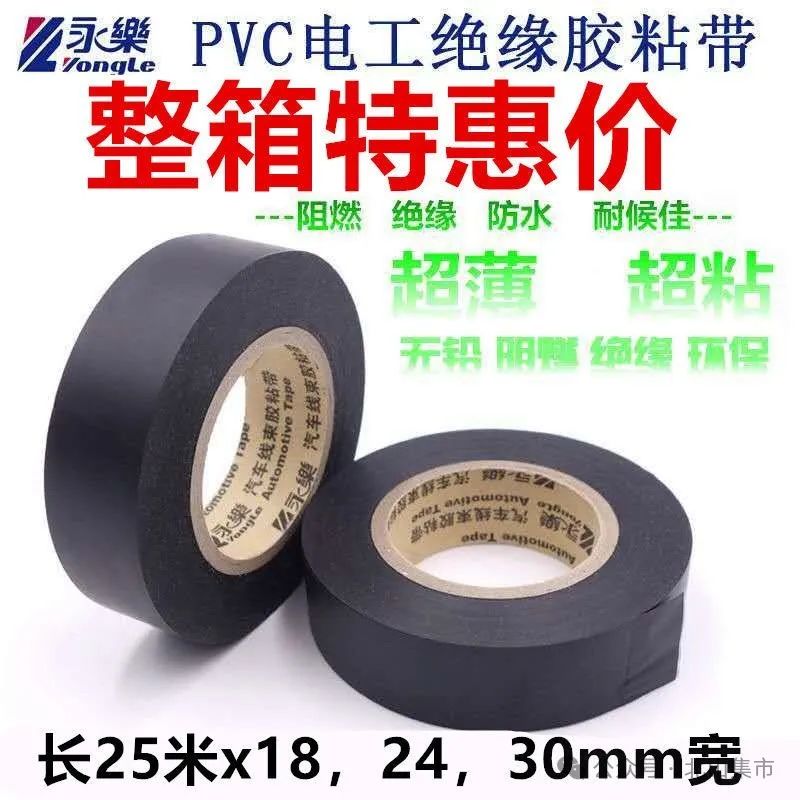 正品永乐电工胶带PVC绝缘阻燃进口胶带汽车线束胶布耐高温电胶布