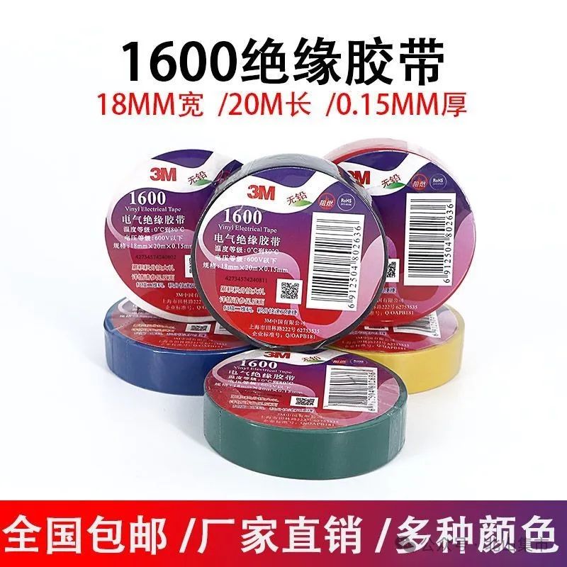 【10卷装】3M电工胶带1600型阻燃无铅电气黑色PVC绝缘防火水胶布