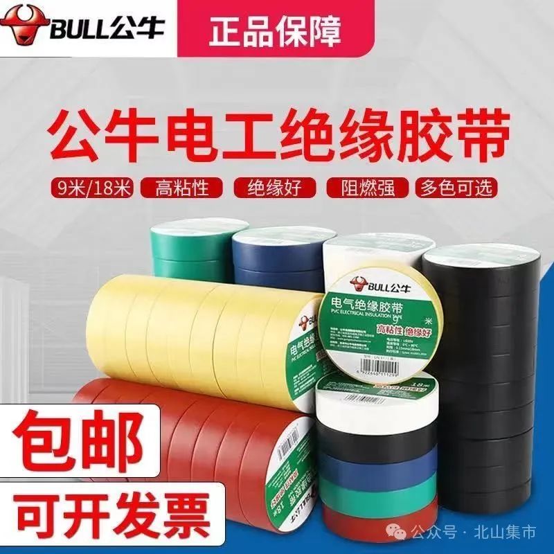 公牛正品电工胶布整箱PVC绝缘电气阻燃高温防水高粘度9-18米专用【2月26日发完】