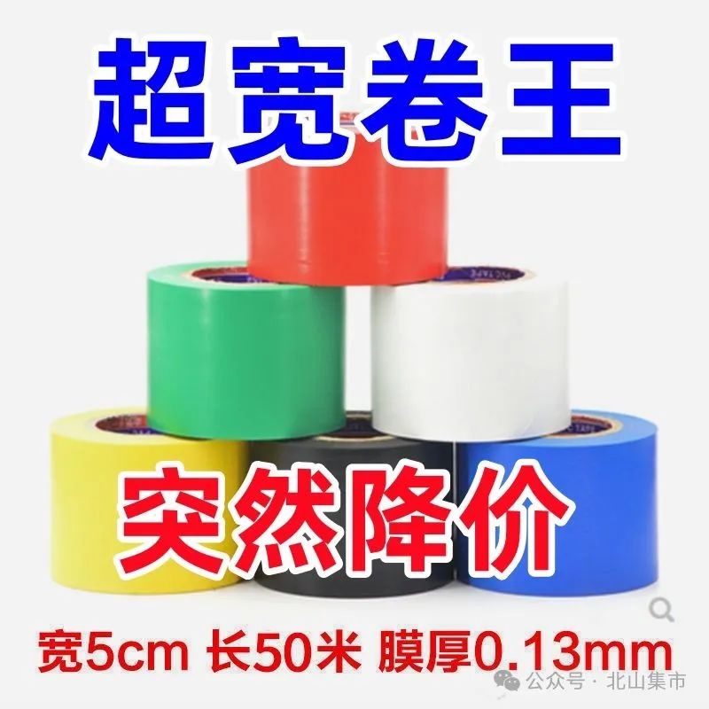 加宽5cm超粘绝缘电工胶带PVC电气阻燃耐高温防水管道包扎黑胶布