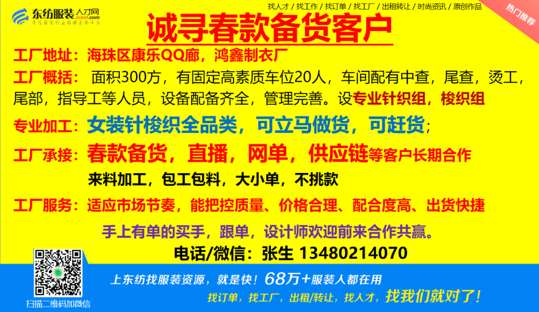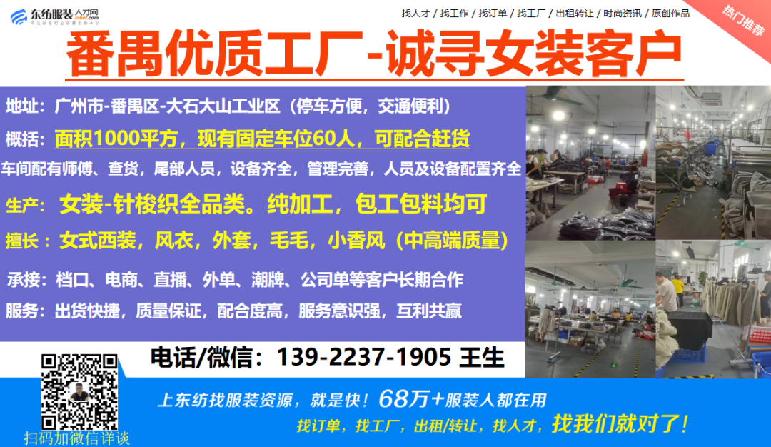 服装·诚寻客户丨2. 03号,找订单/找工厂/出租/转让信息