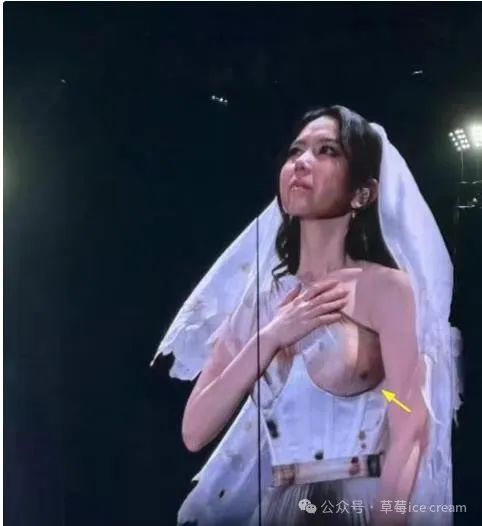 然而,另一方面,婚纱的设计却引发了争议。婚纱的不规则印花,尤其是在胸部位置,让人产生了走光的错觉。这一设计是否过于前卫,或者是因为意外坠台导致的服装出现问题,成为了网友热烈讨论的焦点。