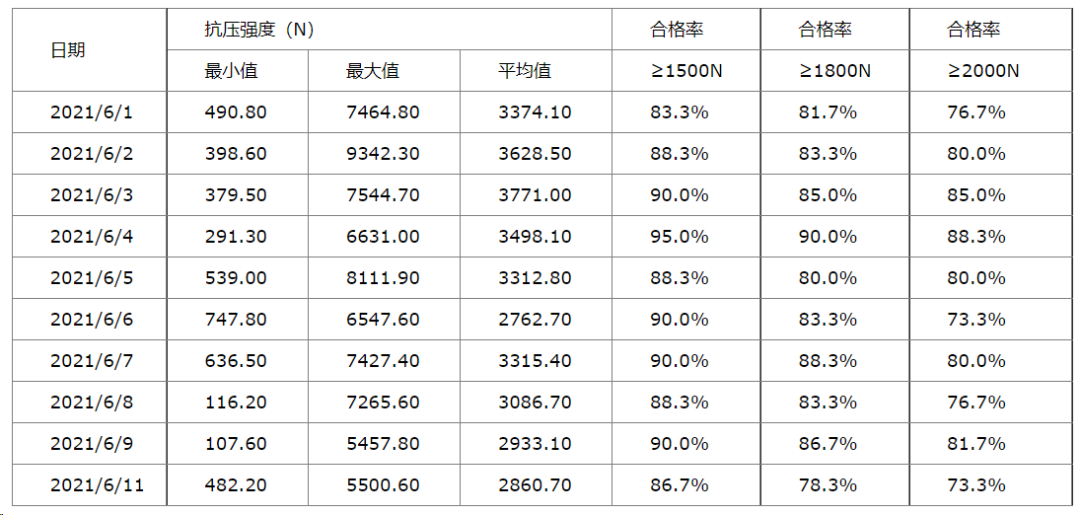 表1 为2021年6月份抽查入炉生球粒度和落下