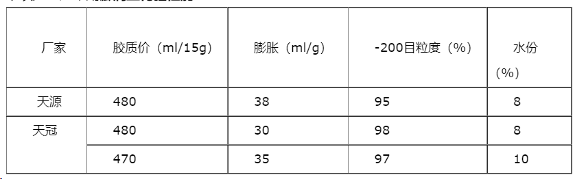 (2)我厂黏结剂主要使用的是膨润土。膨润土可以提高生球的落下强度,在造球过程中起调节水分作用,并提高生球的爆裂温度。膨润土的主要成分是蒙脱石,其具有层状结构、阳离子吸附交换能力和很强的水化能力。上述特性使膨润土具有很强的黏结性、吸附性、分散性和膨胀性。球团行业目前是以蒙脱石含量来衡量膨润土质量情况。确定膨润土技术条件为:蒙脱石含量大于60%,粒度小于0.074mm大于95%,水分小于12%。我厂膨润土配比量一般情况2.2%-2.4%。下表为我厂常用膨润土化验性能