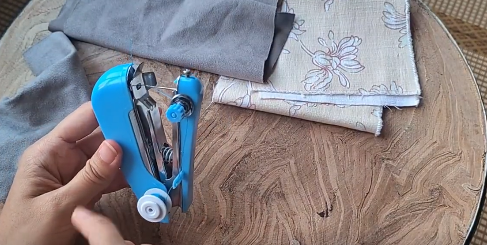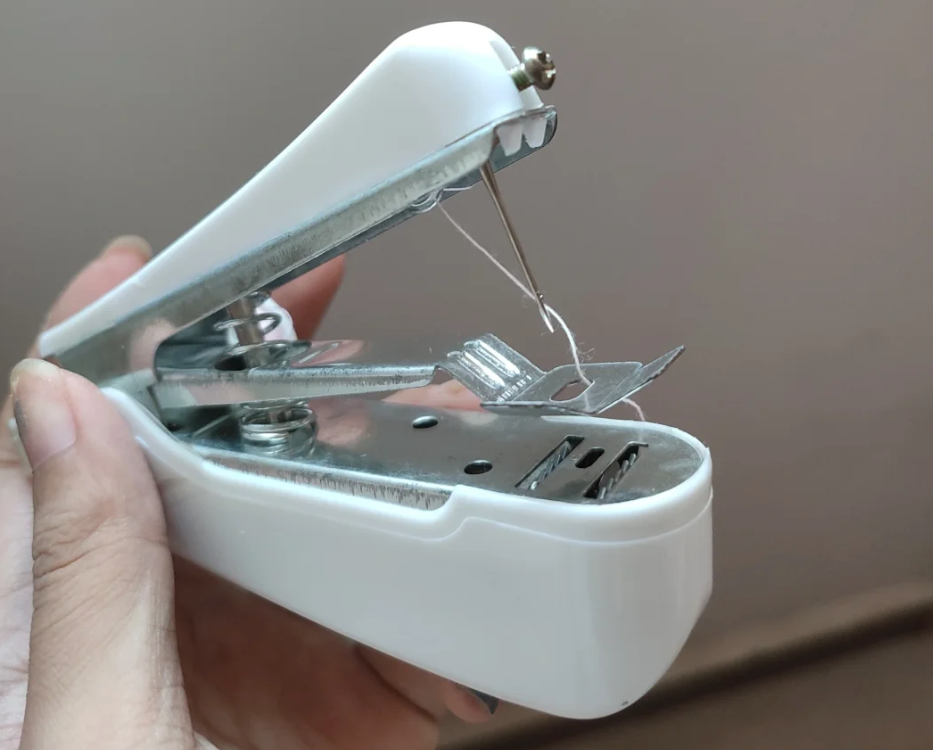 有一种小型缝纫机,还可以手持,商家在视频里大肆宣传,说它能够替代针线,缝补方便,不伤眼睛,不扎手。