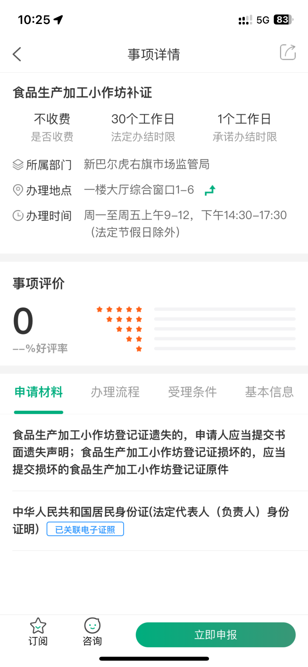 今天一起来看如何通过 “蒙速办”APP办理《食品生产加工小作坊补正》申请事项
