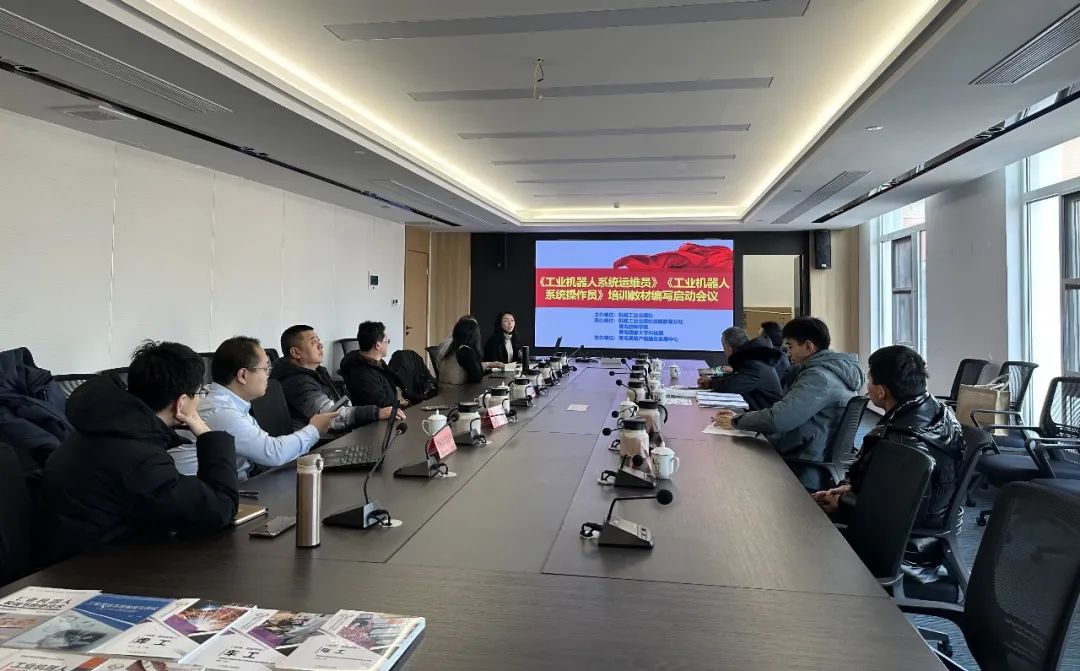 1月25至27日,机械工业出版社《工业机器人系统运维员》《工业机器人系统操作员》培训教材编写启动会议在大学科技园会议室召开。会议由机械工业出版社主办,机械工业出版社技能教育分社、青岛技师学院、青岛国家大学科技园承办、青岛高新产教融合发展中心协办。机械工业出版社技能教育分社副社长陈玉芝、中车首席技能专家、中华技能大师周勇、中国海洋大学工程学院教授赵健,以及来自泉州、威海、青岛等地的技师学院和职业技术学院的老师参加会议。