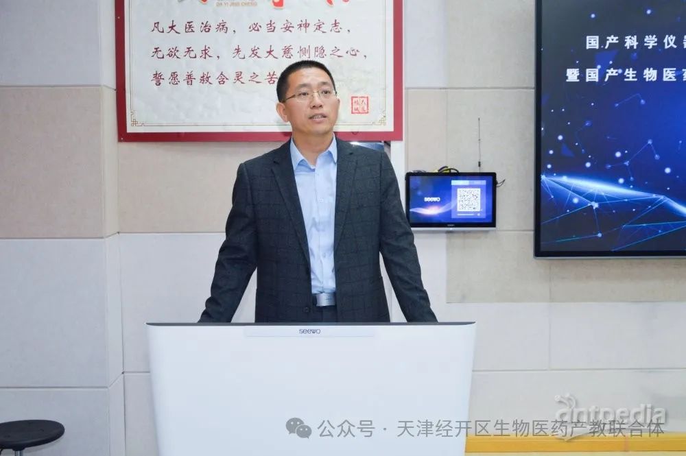 陈建夫局长发表了致辞。他首先对参与此次活动的各位嘉宾表示热烈的欢迎和衷心的感谢。他指出,科学仪器作为推动科技创新和产业发展的重要基石,其自主研发和产业化对于提升国家科技实力和产业竞争力具有举足轻重的地位。国产科学仪器应用与教学验评中心的成立,不仅是对国产仪器发展的有力推动,更是对人才培养和科技创新的有力支持。他强调了天津经济技术开发区在生物医药产业发展中的重要地位,并表示企业服务局将一如既往地支持区内企业的发展,提供全方位的服务和保障。他表示,企业服务局将与各方紧密合作,共同推动国产科学仪器的发展和应用,为我国科技事业的发展贡献力量。