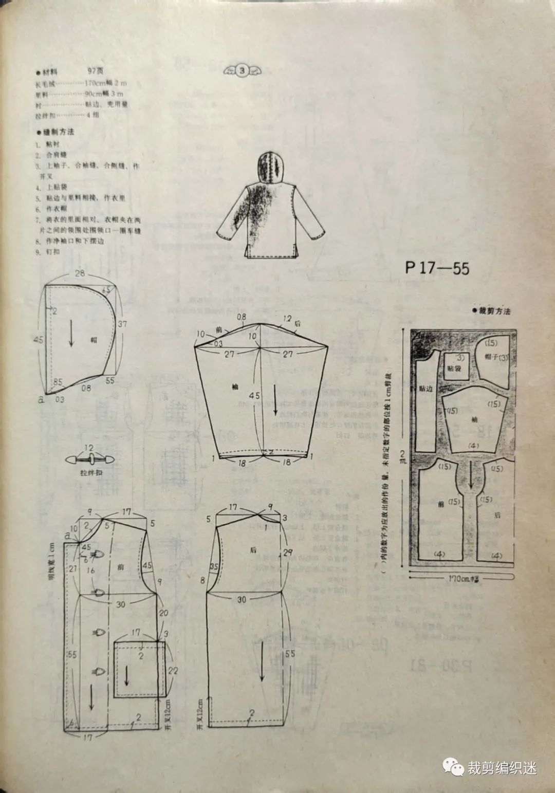 老服装书分享—秋冬连帽大衣 裁剪图