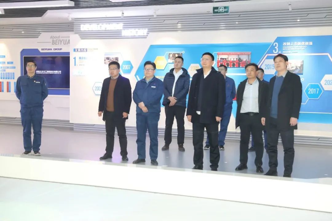会谈前,江泽礼一行首先来到北元化工集团展览馆,详细了解了北元化工集团的发展历程、基本概况、主要产品及覆盖区域、“物华聚北、天人和元”的“聚·和”文化,企业愿景和使命以及安全文化管控体系等。